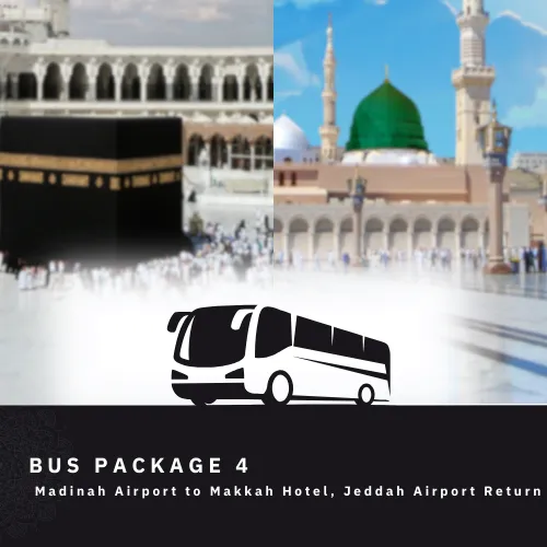 Travel from Makkah to Madinah in the comfort of a Bus, perfect for larger groups. Umrah Mubarak ensures a smooth and seamless journey between these two spiritual destinations.